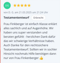 Manchmal braucht es mehr als Informationen und Orientierung. Wenn es um konkrete rechtliche Einschätzungen, die Gestaltung von Testamenten oder die Klärung individueller Erbfragen geht, stehe ich in meiner Kanzlei als Fachanwältin für Erbrecht und Familienrecht zur Seite.